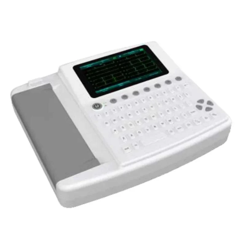 7 inch high resolution colour touch screen . Full alphanumeric keyboard with shortcut keys, efficient in operation. Simultaneous 12 leads ECG acquisition and display Automatic ECG measurements and interpretation .Internal storage up to 1000 cases, convenient for case review and statistic .Built-in rechargeable lithium high capacity battery .ECG data can be transmitted to PC via USB, ECG reports Can be saved, opened, in PC via ECG playback software.
