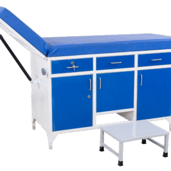 Provision for IV Pole, fitted with drainage bag holder.