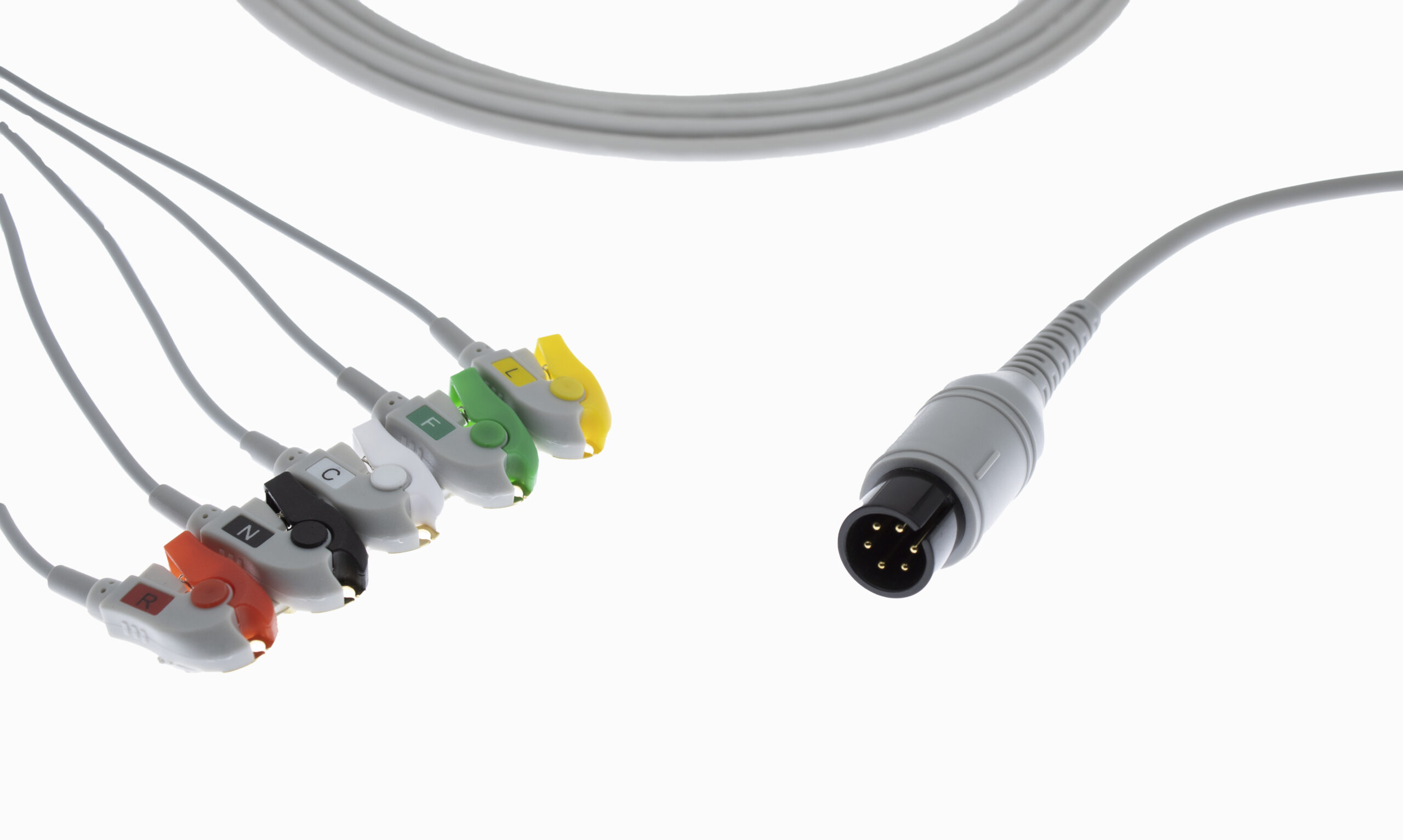 Connector Distal (Monitor end): 6 PIN 5 Lead Snap Type ECG Monitor Cable