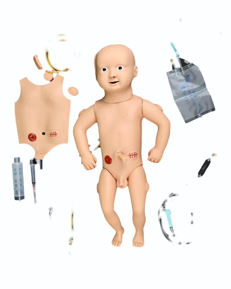 Head, Neck and limbs can be moved freely. The chest skin can be replaced, cephalic venipuncture, umbilical venipuncture, oral and nasal intubation nursing, care of gastrolavage,enema and urethral catheterization, ostomy, Deltoid subcutaneous injection and buttocks intramuscular injection Holistic nursing: sponge bath, replacing clothes, lactation and diaper changing.