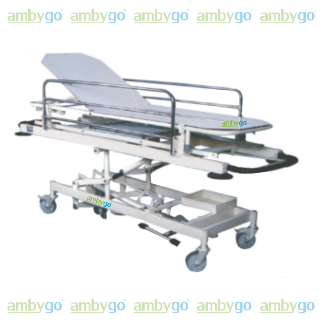 Safety side railing, I.V. Rod, storage tray & Cylinder cage.