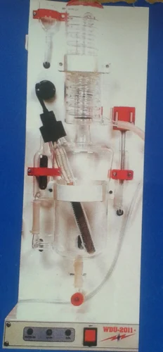 1.first connect the side arm connector /pvc tube for distilled water. 2.Divide the given pvc pipe into part according to your requirements I.e. inlet &outlet pipes.then start water supply to inlet. 3.switch on power. 4.unite will start automatically when the wither level is complete in the boiler. 5.there should not be any disturbance / obstacle in outlet pipe so that the water should go smoothly e.g. outlet pipe should not be crushed & should not go above the outlet level. Direction for washing 1.boiling cylinder must be in cold condition or luke warm. 2.stop the water supply 3.open the drain valve of the boiling cyliner. 4.there should be approximately half of the water retained in the boiling cylinder. 55.put the washing liquid (mild hydrochloric acid) into washing cup. Add same clean water into it & then start water supply. 6. OPen the drain valve after cleaning the dust .Drain the water 1 or 2 times after completing the water level. Not- Dont swith on the power while cleaning the boiling cylinder.