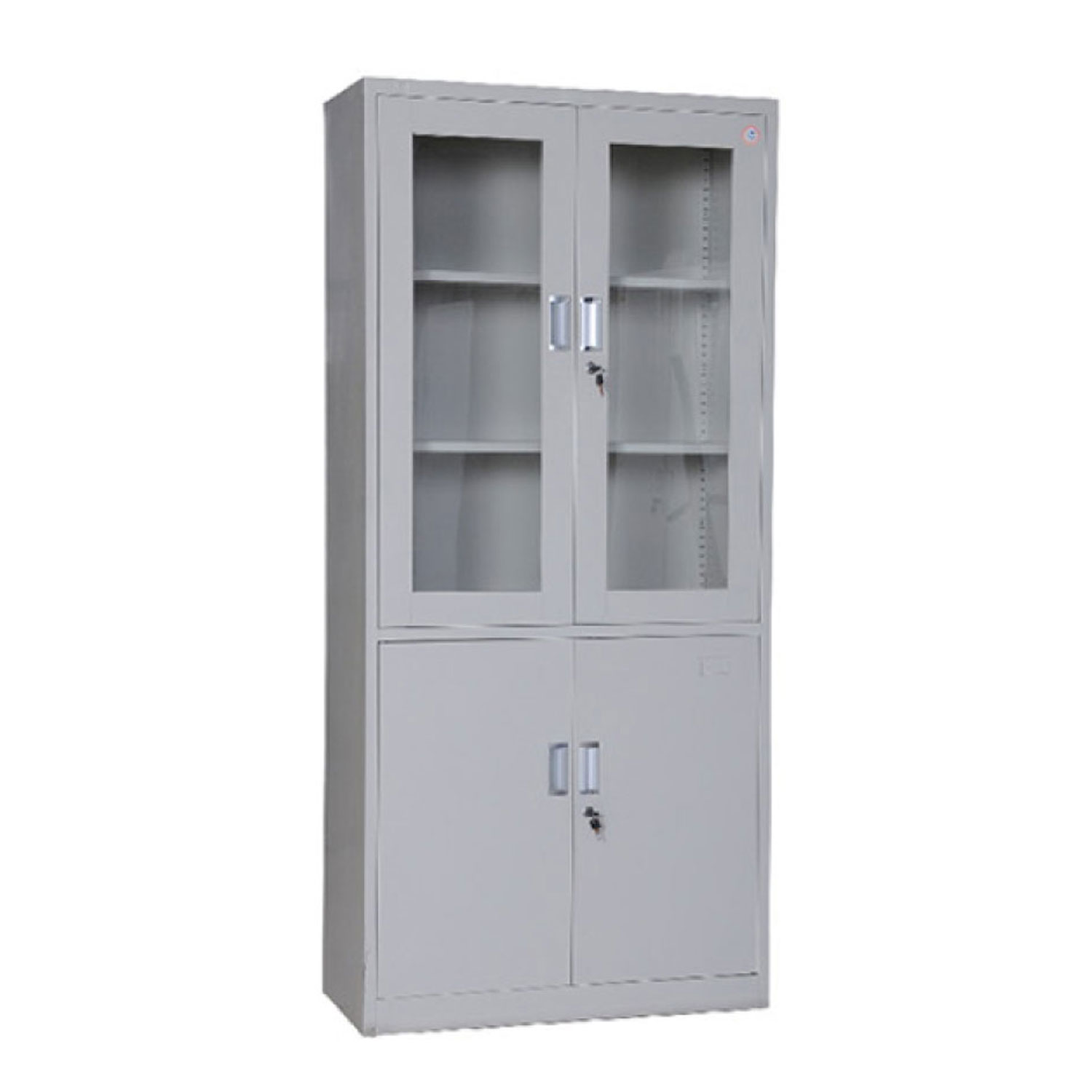 - Upper section with two lockable plexi glass doors, lock and flat key.