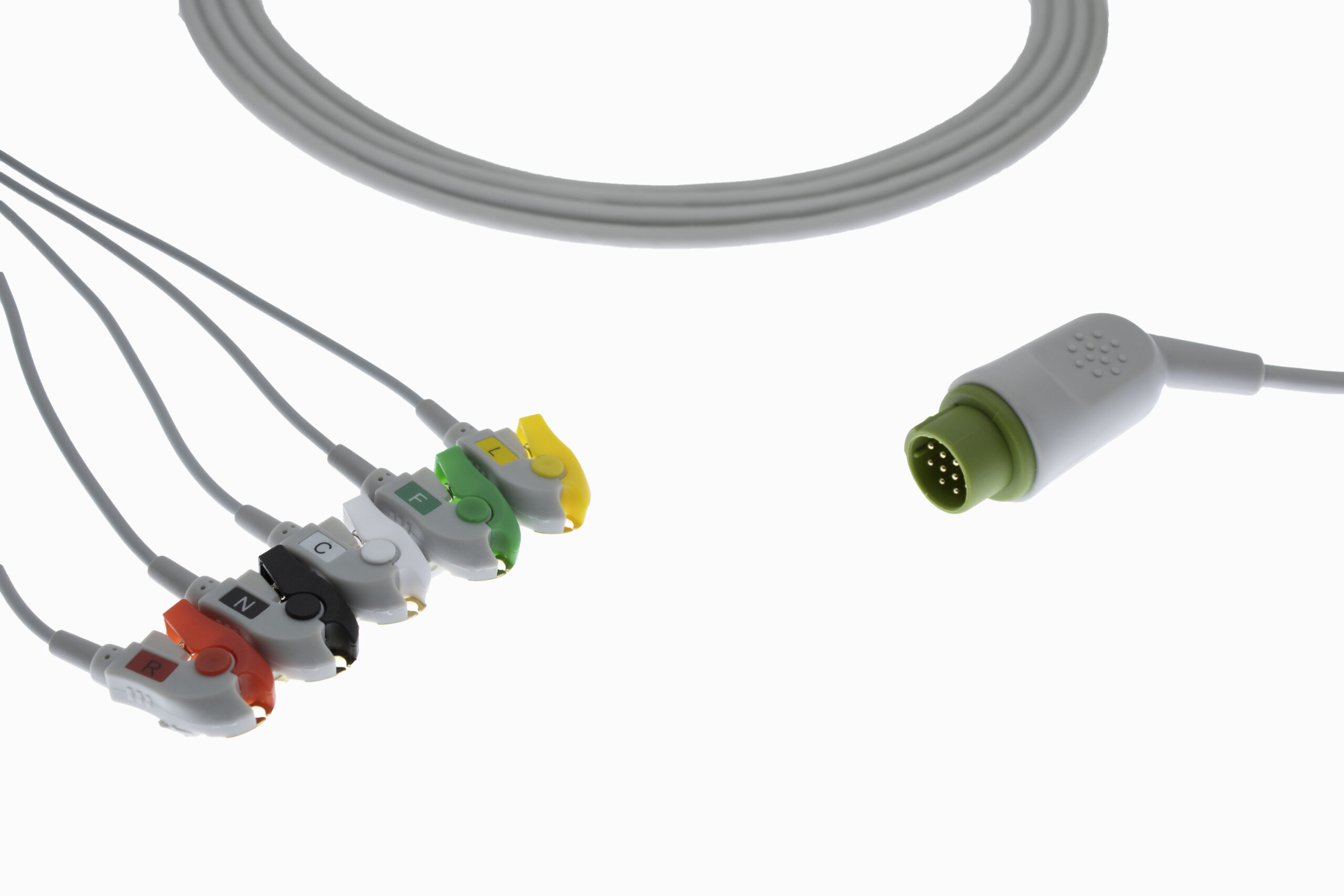 Connector Distal (Monitor end): L & T 12 pin 5 Lead Clip Type ECG Monitor Cable