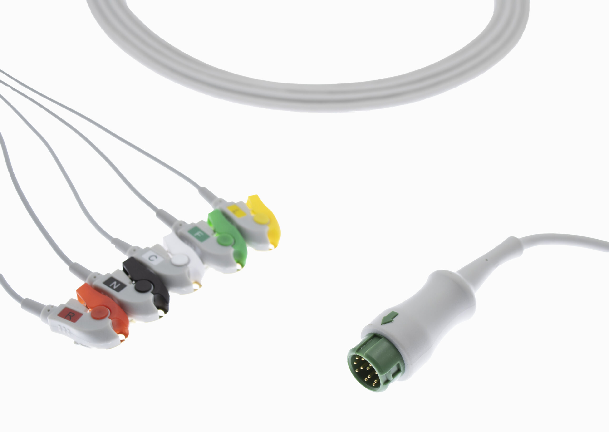 Connector Distal (Monitor end):Mindray T5 12 pin 5 Lead Clip Type ECG Monitor Cable