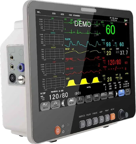 15 inch TFT screen,1024×768 high-resolution 8 channel waveforms display, suitable to bedside Support alarm of invoice, light character string, 3 levels of adjustable voice