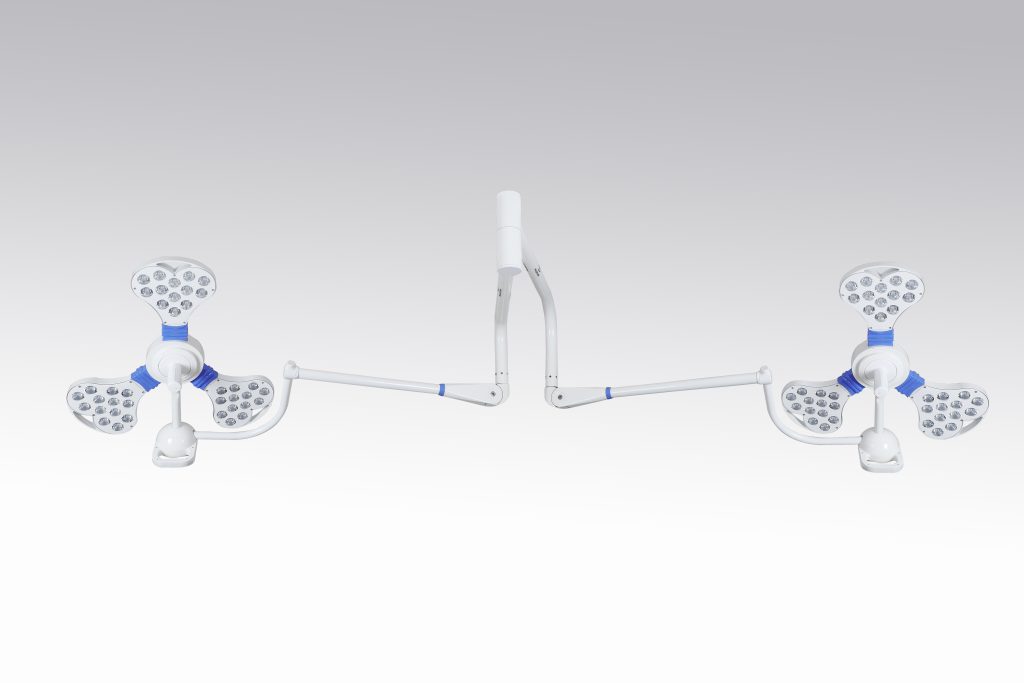 OT Light Aster Series: Ultra-slim, unique shape, and light-weight lamp head help with smooth and precise postures during surgery. Compared to other lights, these powerful lights provide an impressive intensity of up to 1,60,000 lux. Aster Series lights are compatible with the laminar flow system.