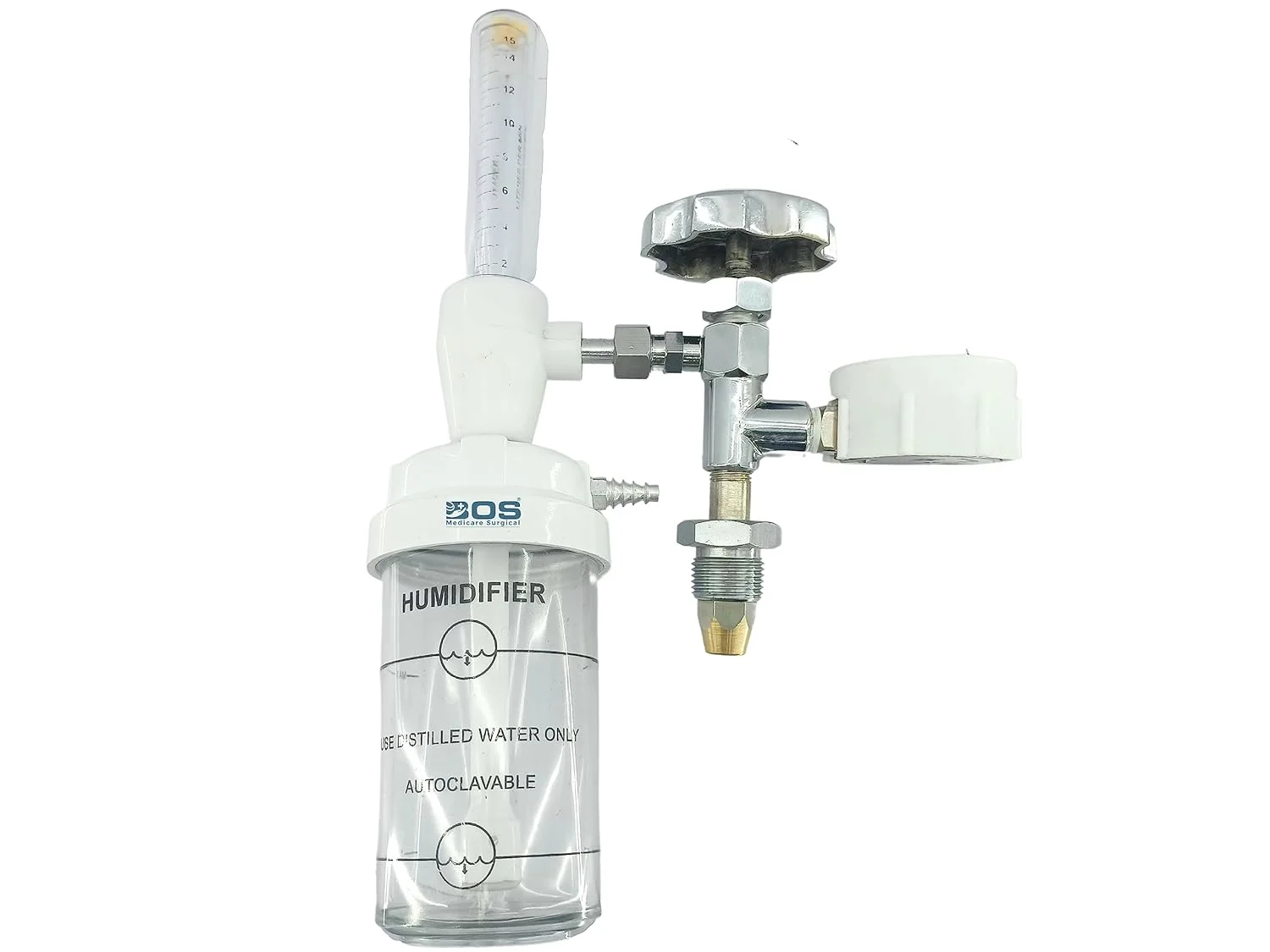 Oxygen Cylinder Regulator with Flowmeter & Humidifier Bottle Made of Metal, Manually Control Oxygen Flow. (Household Oxygen Flow Meter)