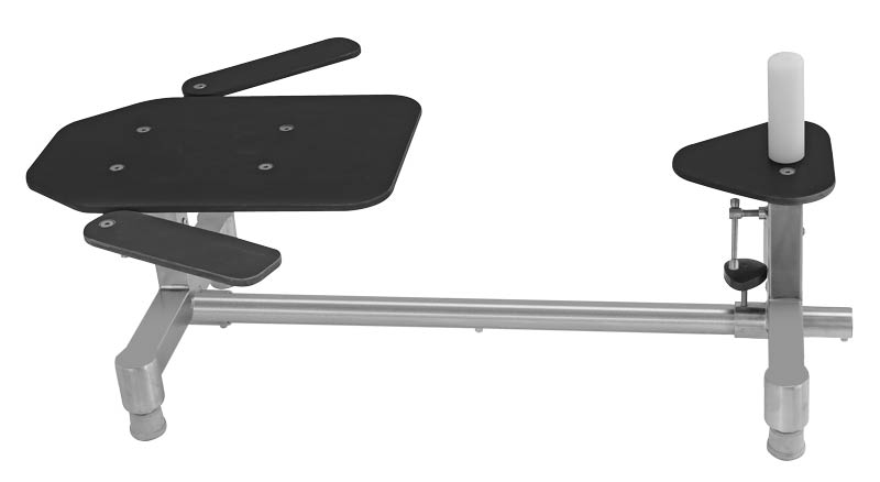 The table’s tabletop rotation and overall length are easily adjustable, and it includes arm support boards, partial spine support, and a removable perineal post to accommodate both infant and large child spica cast applications