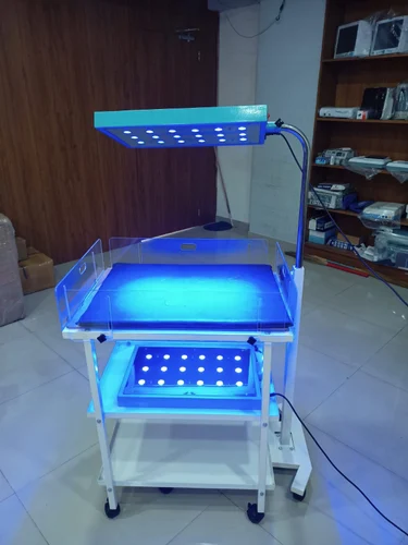 Heavy duty mobile stand phototherapy unit Fire retardant enclosure for light source Light source height adjustment approx. 0.95 m to 1.5 m Light source tilt – continuous upto +/- 90° Source cooling fan