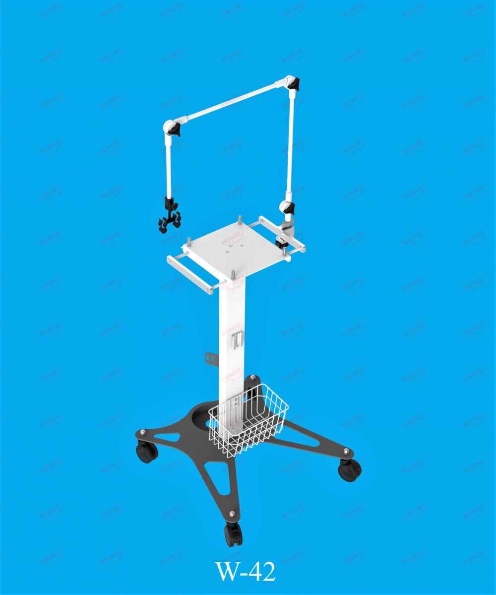 Secure your RespiWin ventilator with this sturdy trolley, complete with an adjustable support arm for improved functionality and ease of use.