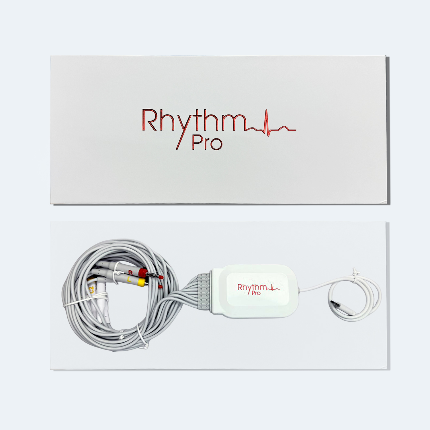 Package Content: 10 Bulb Electrodes, 1 RhythmPro ECG device, 1 Type C Cable Attached With Device, 1 User Manual