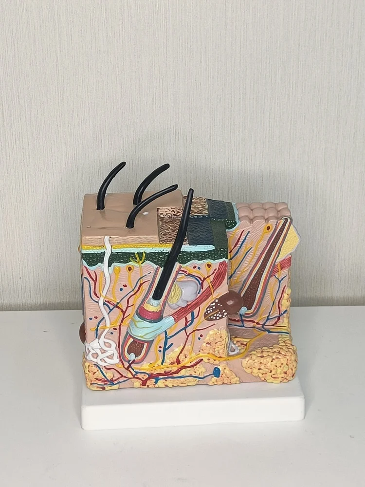 Detailed view of the structure of human skin, made of high quality materials tough and durable , can be used in medical education, hospitals, clinics, etc. Can be used to explain more clearly. The shape is realistic ,easy to watch and learn. Product size:12*7*18.8CM.