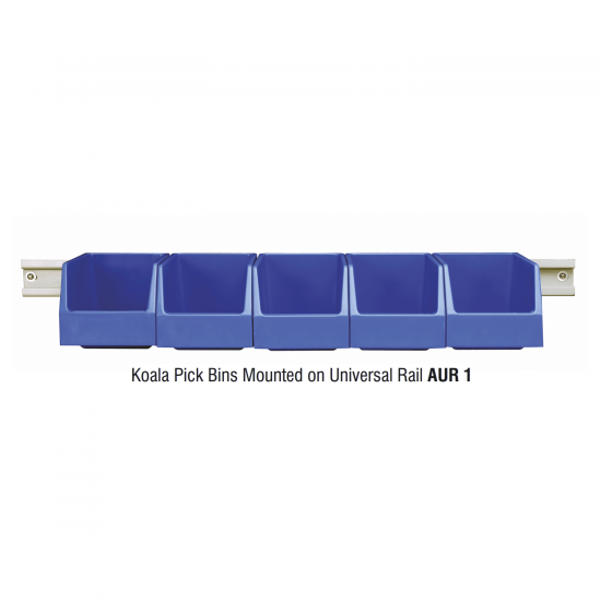 Universal Rails are made from 1.5mm (T) CRCA Steel duly powder coated in Light Grey RAL 7035 colour and can be mounted on any surface like walls, benches, slotted angle systems, stands and trolleys. These rails increase the flexibility of using different sizes of bins with ease and help in optimizing storage space.