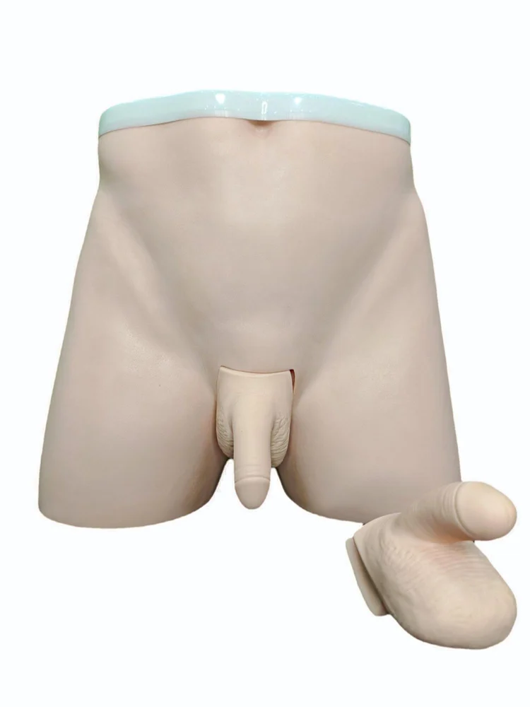 4.Supplied with easy replacement of genitals accessories (containing two testicles and movable scrotal skin and two root vas deferens), then repeatable practice operation can be processed