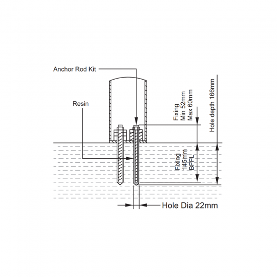 Please note anchor bolts (M16 X 200mm) & fixing resin to be sourced locally.