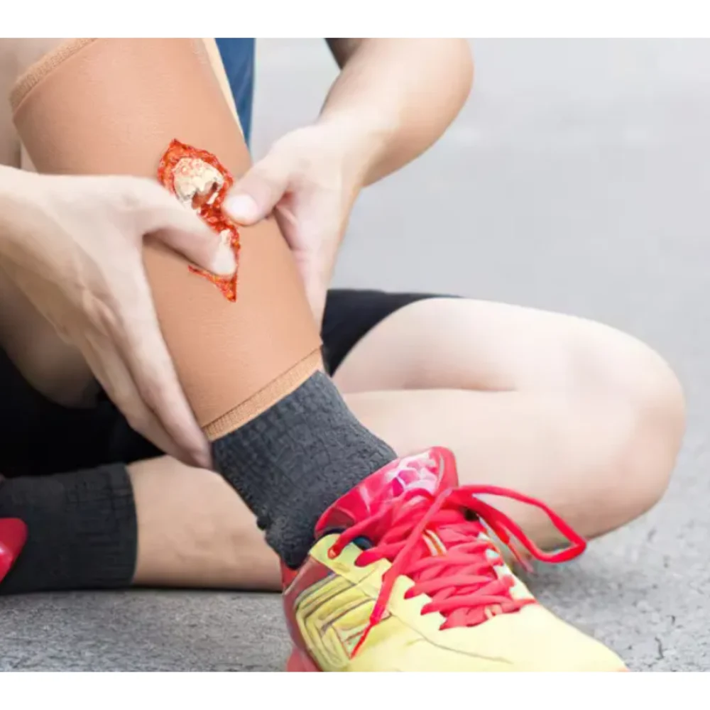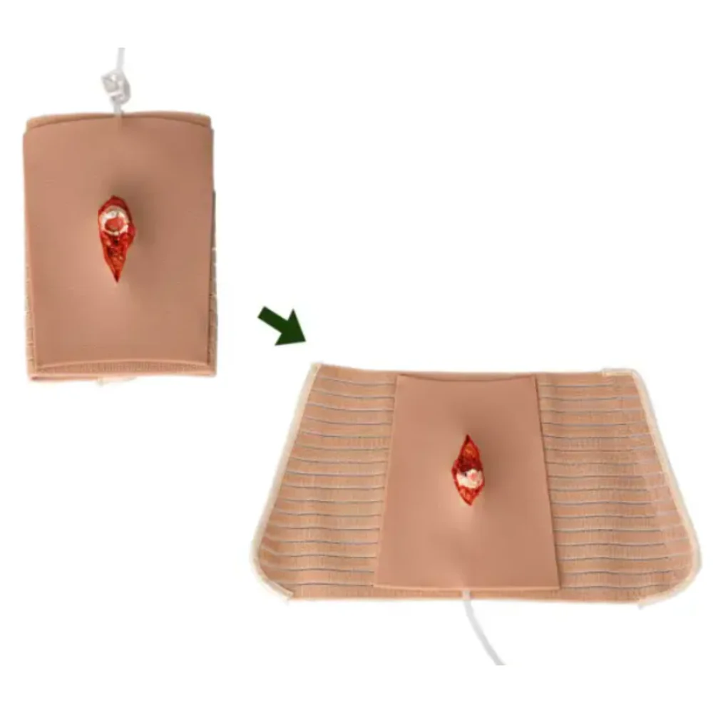 This Open Fracture Wound Care Manikin is a high-quality training tool designed to simulate different stages of open fractures for medical and nursing education. It includes four lifelike wound modules (Stage II to V) that represent progressive trauma conditions with realistic skin texture, bleeding, bone exposure, and tissue damage.